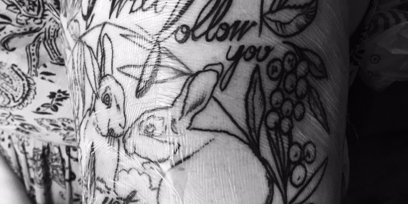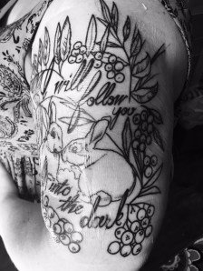 Branches of the tree my son is named for, the words of the lullaby I sing him each night, the ballad of my little family. I have begun to tell my own story there. And with each scratch of needle onto skin I have wiped away the stories others have written that have lapped at my conscious knowing until they enveloped me. Tattooing is both a doing and an undoing, it is creating and uncreating, it is changing the landscape of how we are seen and how we see ourselves. It is one way to write ourselves onto the world.